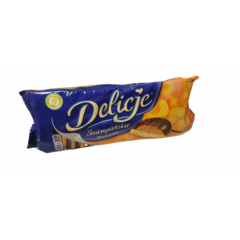 Biszkopty z galaretką pomarańczową oblewane czekoladą. Masa netto: 147g Przechowywać w chłodnym i suchym miejscu.