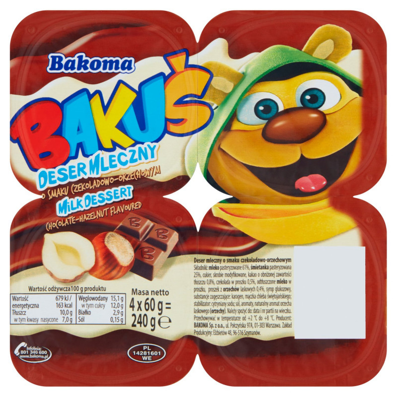 Nazwa produktu uregulowana prawnie: Deser mleczny o smaku czekoladowo-orzechowym
