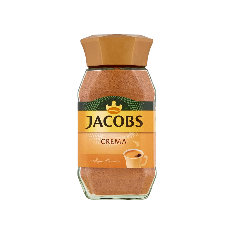 Jacobs Crema to kawa o prawdziwie harmonijnym smaku źwieńczonym kawową pianką. Kawa rozpuszczalna jest otrzymywana w 100% z ziaren kawy. Po otwarciu przechowywać w suchym i chłodnym miejscu. Masa netto - 200g (ok.110 filiżanek)