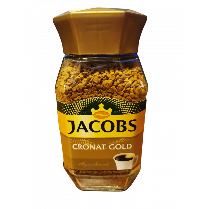 Kawa rozpuszczalna liofilizowana Jacobs Cronat Gold. Kawę pakowano w atmosferze ochronnej. Masa netto : 100g (około 55 filiżanek)