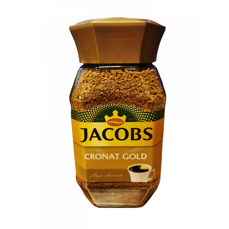 Kawa rozpuszczalna liofilizowana Jacobs Cronat Gold. Kawę pakowano w atmosferze ochronnej. Masa netto : 200g (około 110 filiżanek)