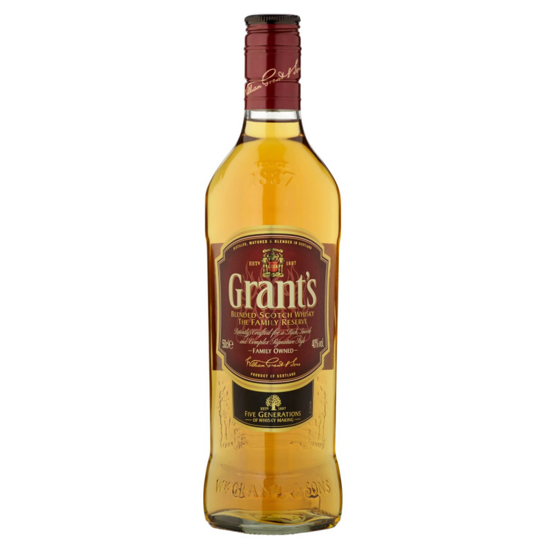 Opis produktu: Wielokrotnie nagradzana whisky z rodziny Grant's od 1898 r. produkowana według tej samej, unikalnej receptury. To harmonijne połączenie 25 najlepszych whisky słodowych i zbożowych, które dzięki 3-letniemu procesowi dojrzewania w dębowych beczkach uzyskuje głęboki i delikatny słodki smak.