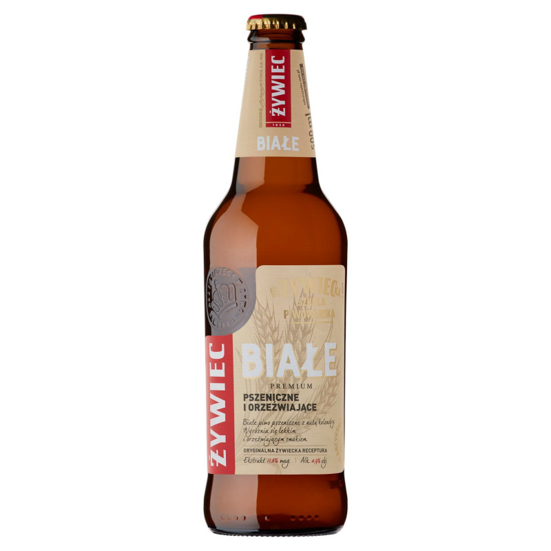Opis produktu: Białe piwo pszeniczne z nutą kolendry. Wyróżnia się lekkim i orzeźwiającym smakiem. Żywiecka Szkoła Piwowarska Receptura piwa Białego jest dziełem mistrzów żywieckiej szkoły piwowarskiej, którzy od pokoleń pracują w warzelniach arcyksiążęcych w Żywcu i w Cieszynie.