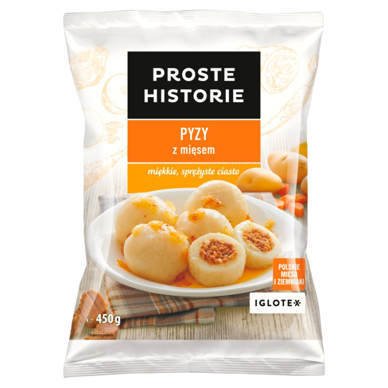 Pyzy ziemniaczane miękkie i sprężyste ciasto. Masa netto: 450g Produkt głęboko mrożony. Chronić przed rozmrożeniem.