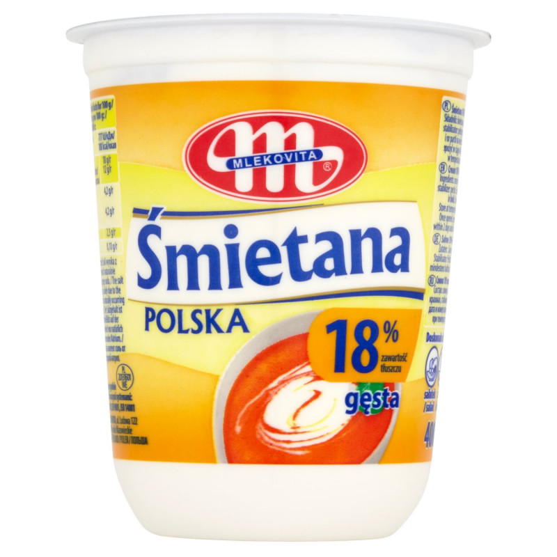 Śmietana homogenizowana 18% 200g. Przechowywać w temperaturze od 0°C do 6°C.
